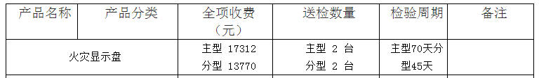 火災(zāi)顯示盤認(rèn)證檢驗(yàn)收費(fèi)表(山東)