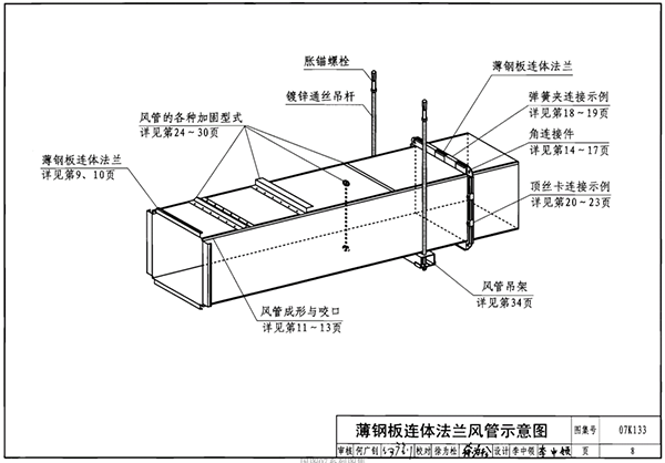 2、薄鋼板法蘭風管(即共板法蘭風管)從2005年開始在國內進行不同范圍的推廣,至2007年形成了相關的標準工藝流程及標準圖集《薄鋼板法蘭風管制作與安裝》07K133。