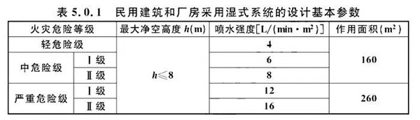 答:是的,表5.0.1、表5.0.2分別規(guī)定了h≤8m、8m<h≤18m濕式系統(tǒng)的參數(shù),《自動噴水滅火系統(tǒng)設(shè)計規(guī)范》GB 50084第5.0.10條、第5.0.11條規(guī)定干式系統(tǒng)、預(yù)作用系統(tǒng)的參數(shù)時引用了表5.0.1,未引用表5.0.2,故干式系統(tǒng)、預(yù)作用系統(tǒng)僅針對不超過8m的場所。