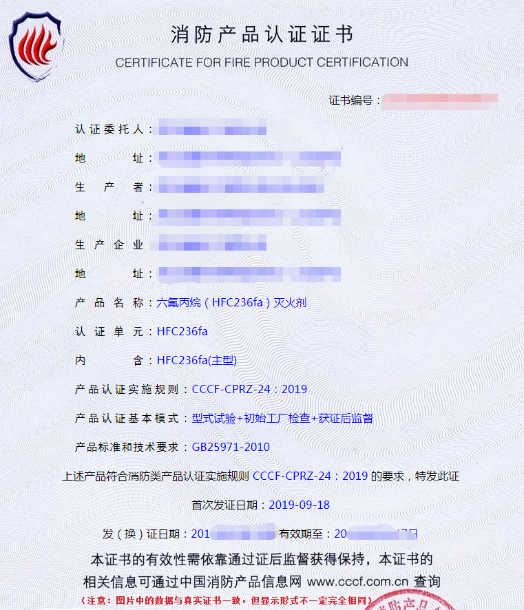 GB25971-2010《六氟丙烷(HFC236fa)滅火劑》。